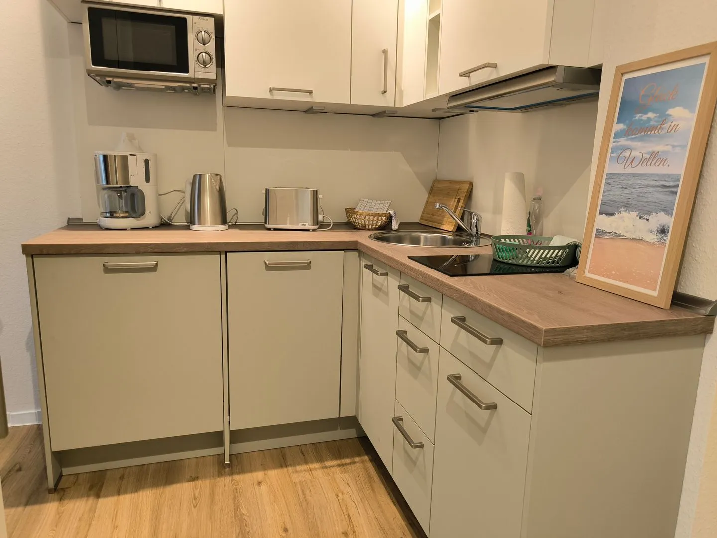 Die Küche ist geschlossen und vollständig eingerichtet. Dazu gehören ein 2-Platten-Herd, Kühlschrank mit Gefrierfach, Mikrowelle, Kaffeemaschine, Wasserkocher, Toaster sowie eine Spülmaschine. Geschirr, Besteck, Küchenutensilien und auch Abfalleimer stehen bereit. Für den Alltag sind außerdem warme Wasserversorgung sowie WC und Waschbecken im Bad vorhanden. Komfort im gesamten Aufenthalt bieten Bettwäsche- und Handtücher sowie Badetücher. Fliegengitter sorgen dafür, dass die frische Brise genossen werden kann, ohne auf Unbeschwertheit verzichten zu müssen. Ein WLAN-Anschluss ist verfügbar, zudem runden Radio und CD-Spieler das Angebot ab. Ein kontaktloser Check-in und Check-out ist ebenfalls möglich, sodass Ihre Anreise unkompliziert verläuft.
